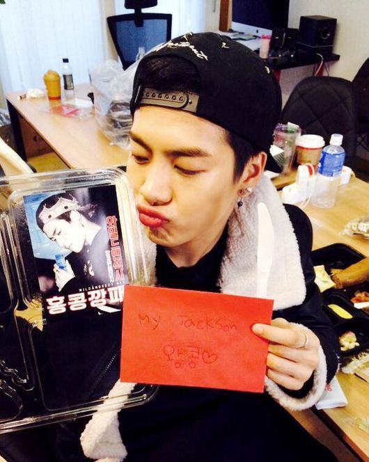 잭슨은 10일 오후 갓세븐 공식 트위터를 통해 “추운 날 보내주신 따뜻한 꿀맛 도시락 짱! 감사합니다! 홍콩깡패 왕콩이가, 와일드 앤 섹시 잭슨이가! 제일 맛있게 먹었습니다. 고마워요 아이 갓 세븐(I GOT7)”이라는 글과 함께 사진 한 장을 게재했다.