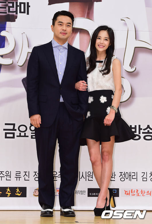10일 오후 서울 SBS 목동사옥에서 열린 SBS 일일드라마 '달려라 장미' 제작발표회에서 정준과 이영아가 포토타임을 갖고 있다.