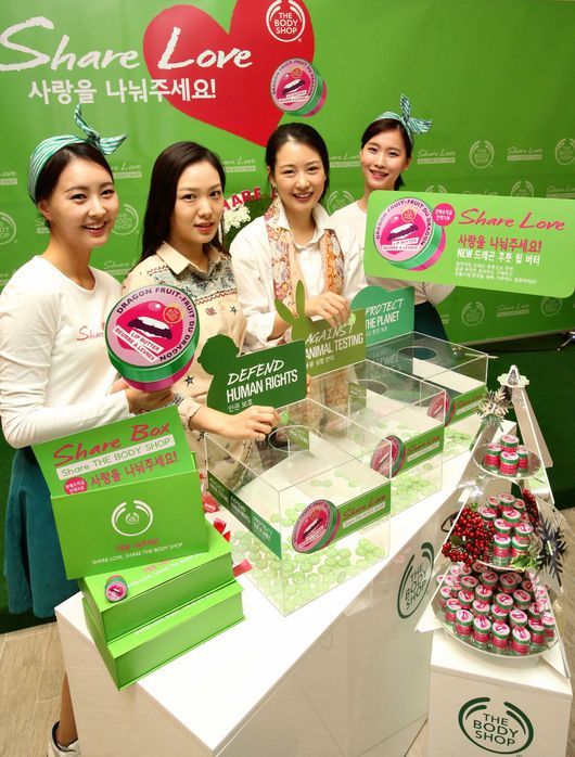 행동하는 아름다움, 영국 자연주의 브랜드 더바디샵(www.thebodyshop.co.kr) 10일 더바디샵 코엑스몰점에서 '더바디샵 드래곤 후룻 립 버터'(10ml/ 9900원)의 판매수익금 전액을 기부하기 위한 '쉐어 러브, 쉐어 더바디샵(Share Love, Share THE BODY SHOP)' 캠페인 행사를 개최했다.