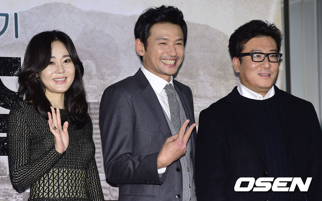 10일 오후 서울 영등포구 CGV 영등포점에서 열린 영화 '국제시장 VIP 시사회'에서 배우 김윤진,황정민, 감독 윤제균이 포토타임을 갖고 있다.