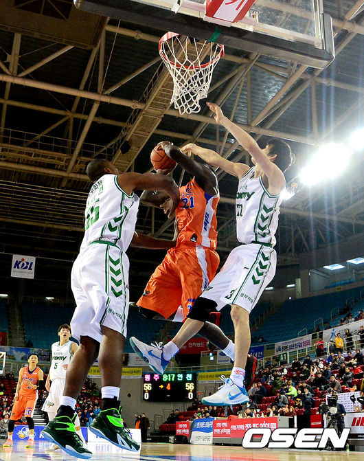 4쿼터 동부 김주성이 전자랜드 레더를 슛블록하고 있다./jpnews@osen.co.kr