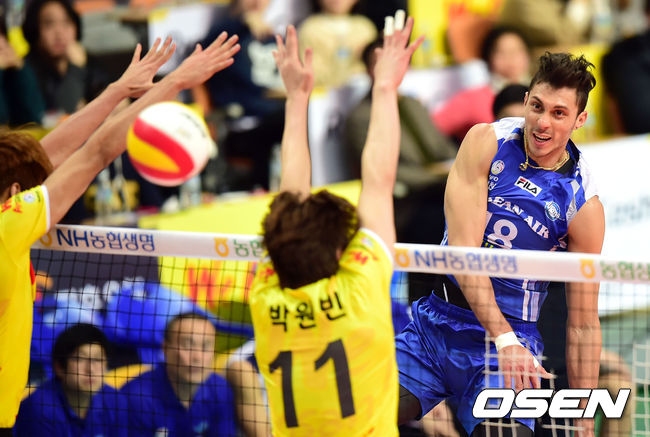 10일 오후 안산 상록수체육관에서 열린 '2014-2015 NH농협 V-리그' OK저축은행과 대한항공의 경기 대한항공 산체스가 공격을 시도하고 있다.