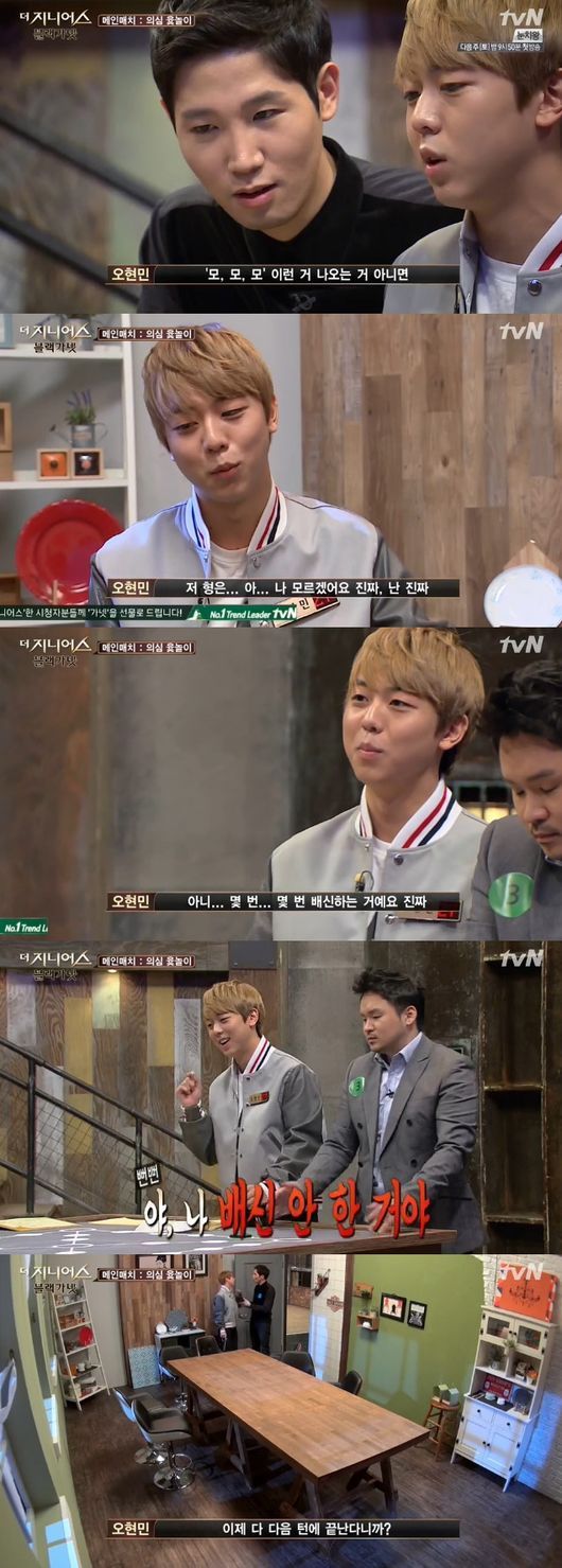 이날 김경훈과 오현민은 훈훈하게 포옹하며 오프닝을 맞았지만, 오현민의 이중트릭으로 인해 와해됐다. 김경훈은 “현민이가 저를 이용하려는 모습을 보면서 막판에 뒤통수를 맞겠구나 싶다”며 오현민이 아닌 장동민에게 손을 내미었다.