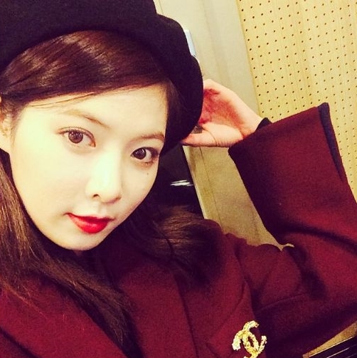 공개된 사진 속에는 버건디색 코트에 검은색 빵모자를 쓰고 카메라를 향해 포즈를 취하고 있는 현아의 모습이 담겨있다. 특히 현아는 하얀 피부에 빨간 립스틱을 포인트로 남다른 섹시미를 과시해 눈길을 끌었다.