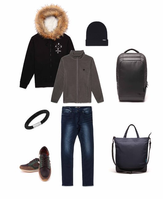 특히 후드에 라쿤 등 리얼 퍼가 가미된 블랙의 후드 집업 아우터는 내추럴하게 멋스러운 놈코어 패션을 완성시켜 주며 동시에 보온성까지 더해주어 실용적이다. 여기에 그레이 컬러의 후리스 집업을 이너 웨어로 레이어드 한다면 톤온톤 매치로 보다 세련된 느낌을 줄 수 있다.