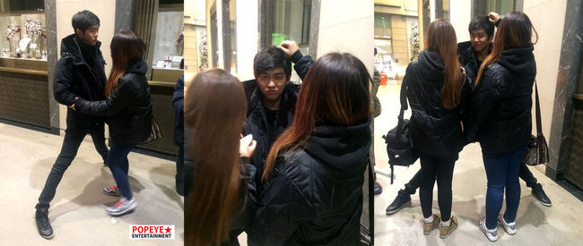 배우 윤균상이 여성 스태프와 키 높이를 맞추는 매너다리가 포착됐다.