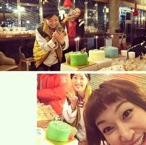 공개된 사진 속에는 알록달록한 색의 케이크를 찍는 한지혜와, 이런 한지혜의 모습을 카메라에 담고 있는 변정수의 모습이 담겨있다. 특히 이들은 환한 미소로 화기애애한 분위기를 자아내 눈길을 끌었다.