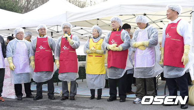 11일 오전 서울 강남구 개포동 남부적십자혈액원에서 열린 'KBO 사랑의 김장나눔' 봉사활동 행사에서 양해영 사무총장이 김장에 앞 서 인삿말을 전하고 있다.