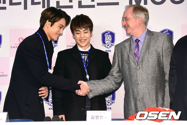MOU 체결식에는 정몽규 회장, 울리 슈틸리케 감독, 김영민 SM엔터테인먼트 대표, EXO 멤버 카이, 시우민이 참석한다.