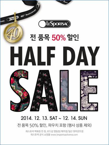 패션 가방 브랜드 레스포색이 오는 13일부터 이틀간 '하프데이 세일(HALFDAY SALE)'을 실시한다.