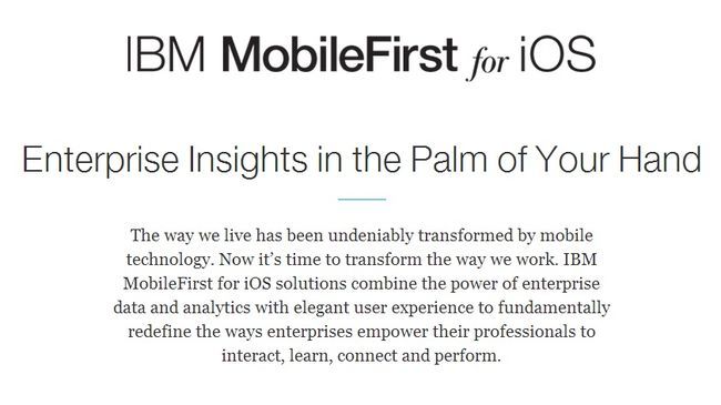 애플과 IBM은 iOS용 IBM MobileFirst 솔루션의 첫 단계를 11일 선보였다. 이는 IBM의 빅데이터 및 분석 기능을 아이폰과 아이패드의 기업 사용자가 이용할 수 있는 새로운 개념의 기업용 앱 및 클라우드 서비스다.
