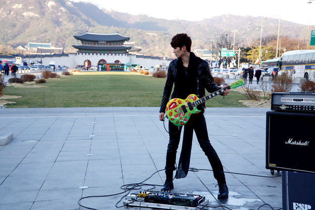 11일 오후 SMTOWN 유튜브 채널 등을 통해 공개된 ‘광화문에서’ 일렉기타 버전 영상에는 정모가 광화문을 찾아 규현의 ‘광화문에서’를 연주하는 모습을 담고 있다.