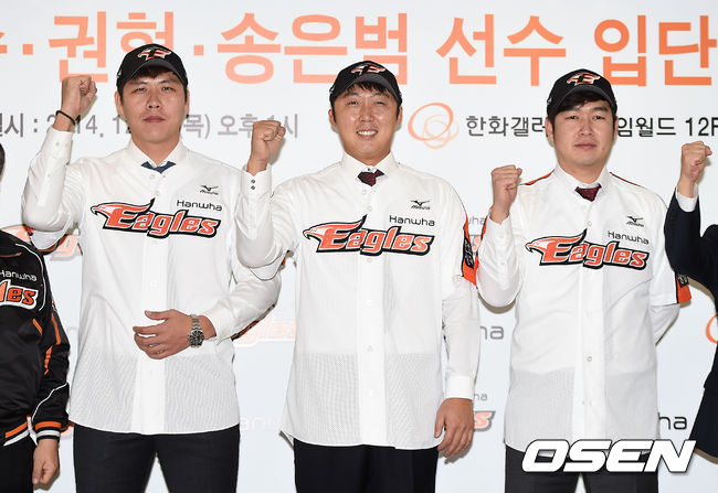 11일 오후 대전 갤러리아 타임월드 스카이홀에서 한화 이글스 FA 영입 선수(배영수, 권혁, 송은범) 입단식이 열렸다.