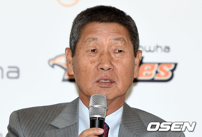 한화 김성근 감독이 취재진의 질문에 답을 하고 있다.