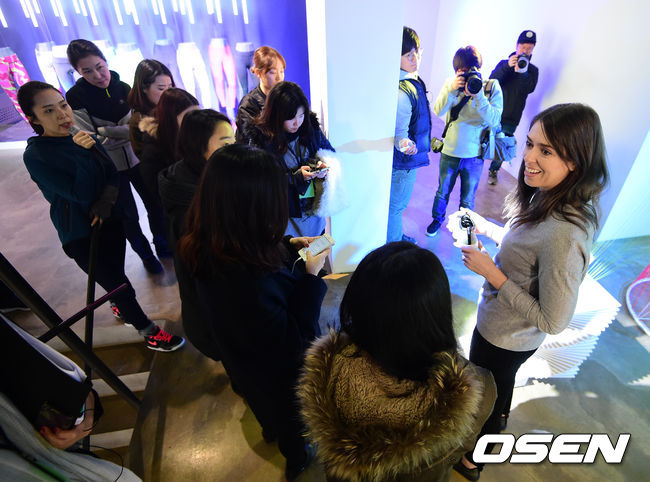 줄리 이가라시가 취재진에 제품 소개를 하고 있다./jpnews@osen.co.kr