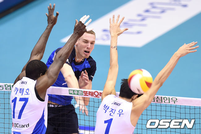 11일 오후 아산 이순신체육관에서 2014-2015 NH농협 V-리그 우리카드와 현대캐피탈의 경기가 열렸다.