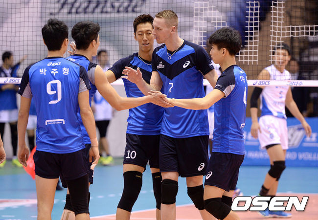 천안 현대캐피탈 스카이워커스가 ‘케빈 효과’를 톡톡히 보고 있다. 아산 우리카드 한새는 적수가 되지 못했다.