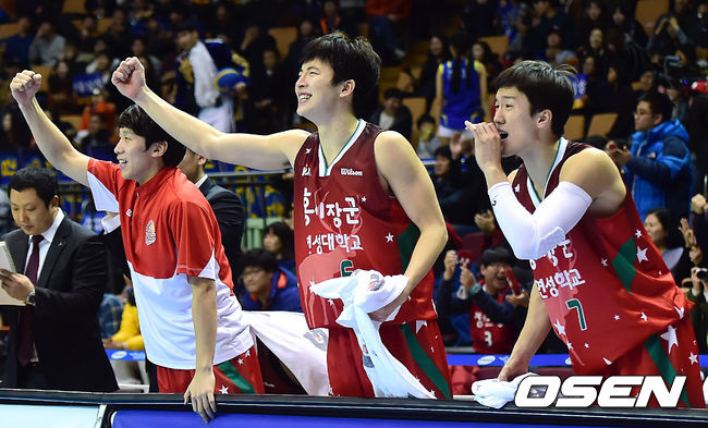 4쿼터 승리를 예감한 KGC 박찬희와 강병현이 기뻐하고 있다. / youngrae@osen.co.kr