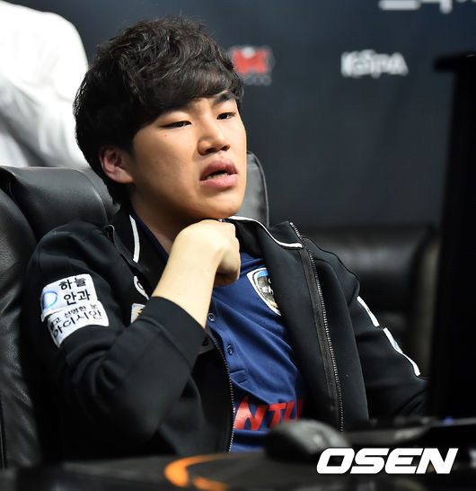 11일 오후 서울 용산 아이파크몰 e스포츠 스타디움에서 '2015 LoL 챔피언스 코리아 프리시즌' 2주차 두번째 경기가 열렸다. 2경기 KT와 CJ의 경기, 1세트에서 진 CJ '코코' 신진영이 아쉬워하고 있다.
