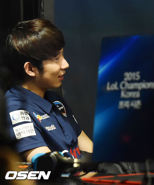 11일 오후 서울 용산 아이파크몰 e스포츠 스타디움에서 '2015 LoL 챔피언스 코리아 프리시즌' 2주차 두번째 경기가 열렸다. 2경기 KT와 CJ의 경기, CJ '샤이' 박상면이 2세트에서 승리한 후 기뻐하고 있다.