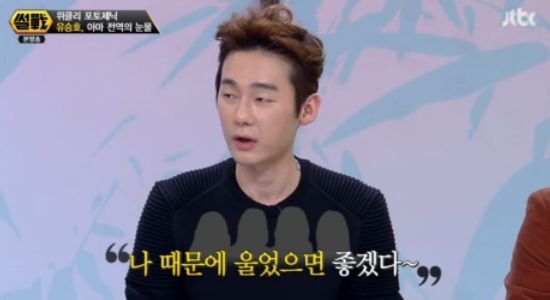 이날 출연진은 최근 유승호가 전역식 당시 눈물을 흘렸던 사진에 대해 이야기를 나눴다. 이에 허지웅은 이 같이 밝히며 "여자분들이 '나 때문에 울었으면 좋겠다'고 한다더라"고 설명했다.