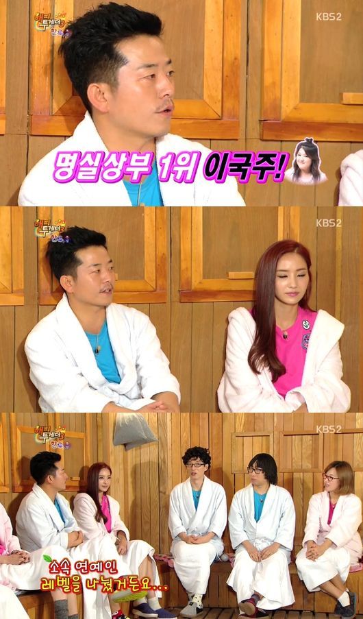 김준호는 11일 오후 방송된 KBS 2TV 예능프로그램 '해피투게더3'에 출연해 “현재 소속사 매출 1위는 이국주”라고 밝혔다.