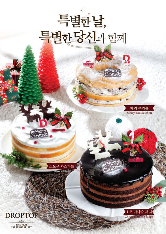 프랜차이즈 커피전문점 드롭탑(DROPTOP, 대표 유재면, www.cafedroptop.com)이 크리스마스를 맞아 케이크 3종을 출시한다.