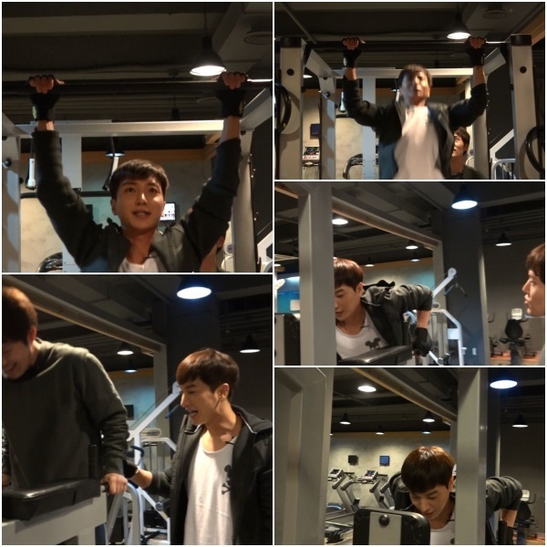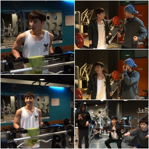 이특은 '뜨아' 소리를 내며 결국 5개를 성공해냈다. 운동을 한창 하고 있는데 갑자기 어디론가 간다. 방금 체육관에 들어선 최시원을 발견한 것이다. 미리 약속된 만남이 아니었는데, 최시원도 기꺼이 카메라 앞에 서줬다. 최시원은 독자들에게 팔굽혀펴기를 권했다.