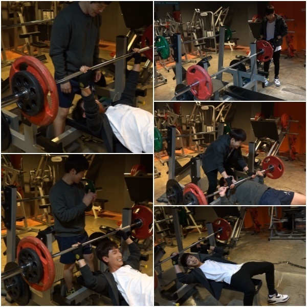 벤치에 누운 이특은 재빠르게 5번을 들었다 놓는다. 이 정도는 별 거 아니라는 이특의 표정에 정 기자가 불안해진다. 번갈아 한번씩 성공을 해낸 두 사람은 무게를 늘려 총 50kg에 도전한다. 정 기자는 5번 성공하더니 "원래 몸에서 이렇게 소리가 나냐"고 물었다.