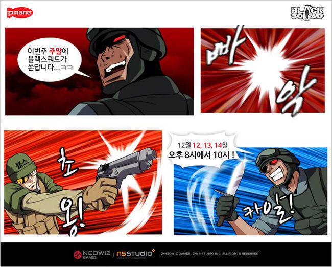 한편 12일부터 14일까지 오후 8시에서 10시 사이에 게임을 1판에서 3판까지 즐긴 모든 이용자에게는 게임머니 5만 골드와 보조 총기, 연막탄 등 아이템을 증정하는 주말 이벤트를 진행한다.