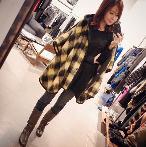 공개된 사진 속에는 체크무늬 망토를 걸친 채 거울에 비친 자신의 모습을 카메라에 담고 있는 소유진의 모습이 담겨있다. 특히 소유진은 스키니진으로 남다른 각선미를 과시해 눈길을 끌었다.