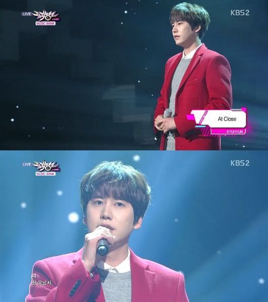 규현은 12일 오후 6시 30분 방송된 KBS 2TV '뮤직뱅크'에서 곡 '뒷모습이 참 예뻤구나'를 꾸몄다.