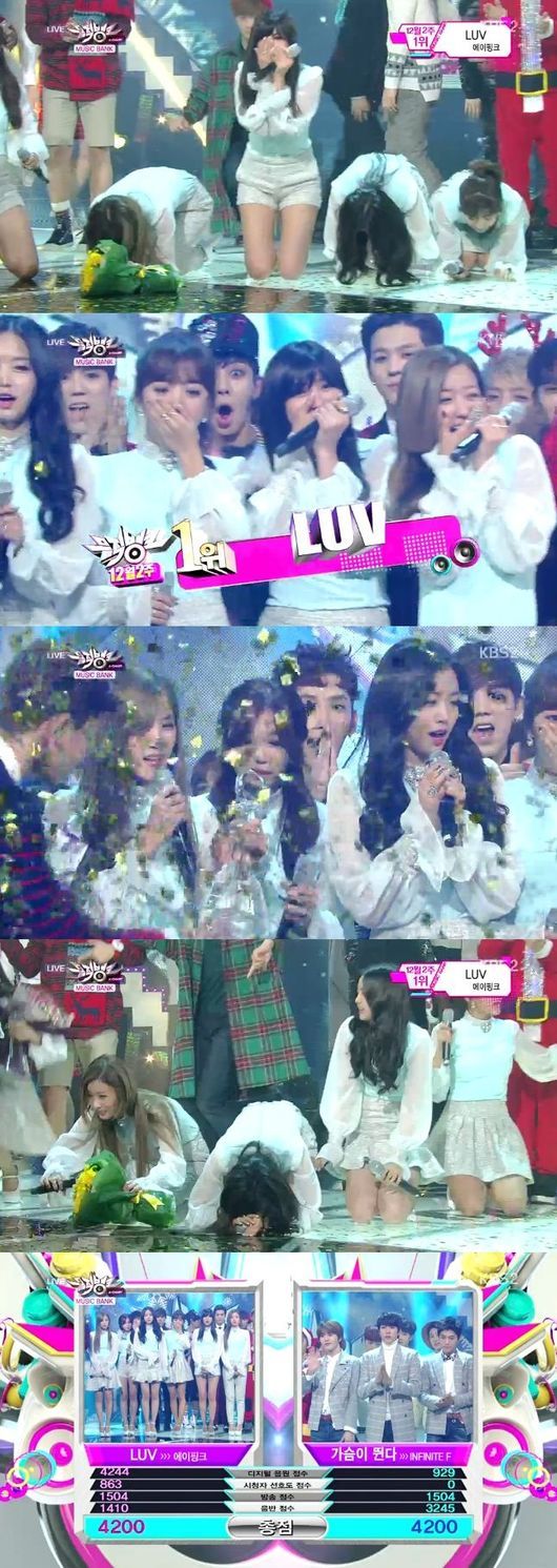 에이핑크는 12일 오후 6시 30분 방송된 KBS 2TV '뮤직뱅크'에서 곡 'LUV'로 1위 트로피를 안았다.