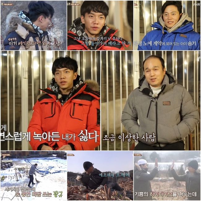 서글서글한 성격은 한결같지만 요리 실력은 어느새 수준급이 돼 있었다. 이승기는 나PD의 우려 속에도 버섯무밥. 대구매운탕, 양미리 구이, 굴전 등을 맛깔스럽게 요리하며 풍성한 저녁 식탁을 차렸다. 특히 이 과정에서 이승기는 “가마솥 밥도 맛있게 많이 지어서 스태프들과 다 같이 나눠먹고 싶다”며 넉넉한 마음 씀씀이를 자랑해 훈훈함을 자아냈다.