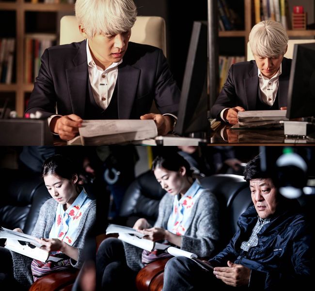 13일 OCN 드라마 ‘닥터 프로스트’는 송창의, 정은채, 성지루가 촬영 중간 틈틈이 대본을 공부하는 모습을 담은 사진을 공개했다.