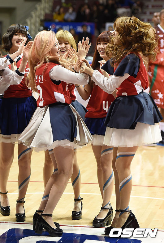 경기에 앞서 걸그룹 라붐 해인이 시투를 하고 있다.