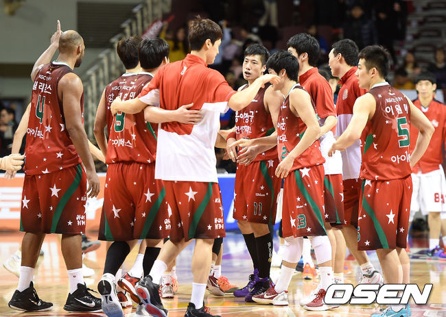 경기 종료 후 KGC 선수들이 승리의 기쁨을 나누고 있다. /sunday@osen.co.kr