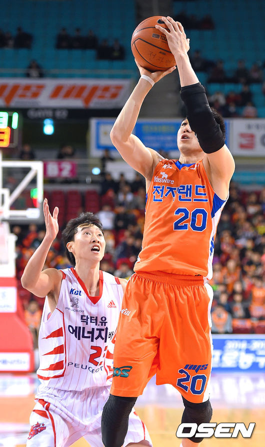 13일 오후 인천 삼산실내체육관서 열린 '2014-2015 KCC 프로농구' 인천 전자랜드와 고양 오리온스의 경기, 1쿼터 전자랜드 정영삼이 2점슛을 성공시키고 있다