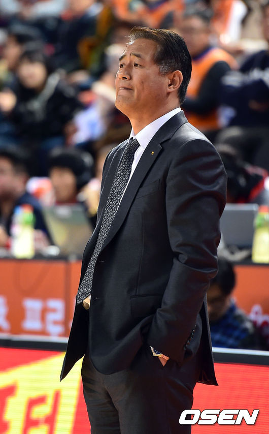 13일 오후 인천 삼산실내체육관서 열린 '2014-2015 KCC 프로농구' 인천 전자랜드와 고양 오리온스의 경기, 1쿼터 오리온스 추일승 감독이 아쉬운 표정으로 경기를 보고 있다.