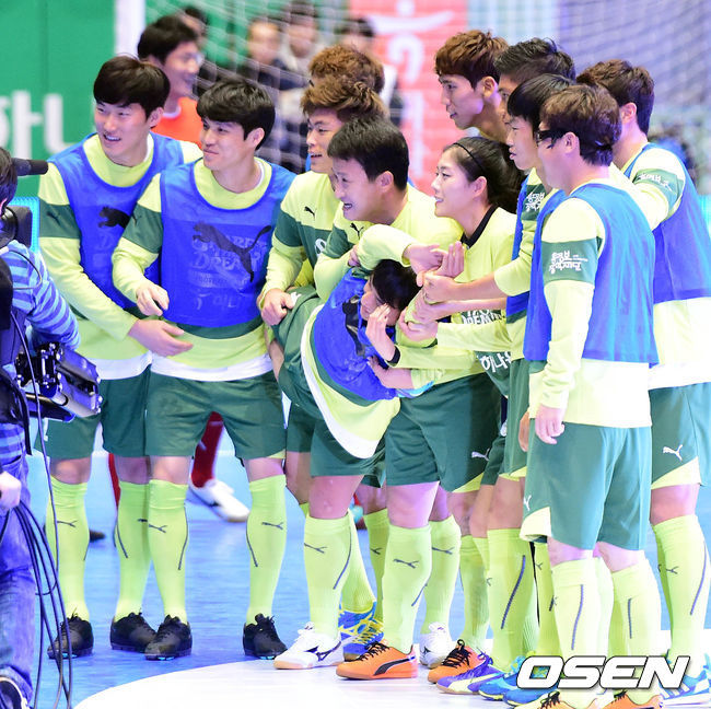 안정환 감독이 이끄는 사랑팀과 김병지 감독이 이끄는 희망팀 31명의 선수들이 13일 서울 잠실실내체육관에서 열린 '하나은행과 함께 하는 Share the Dream Football Match 2014'서 사랑과 희망이 가득한 골잔치를 펼쳤다. 경기는 희망팀의 12-9 승리로 끝났지만, 승패보다 경기 내내 선수들이 전하고자 한 따뜻한 메시지가 더 중요했던 축제였다.