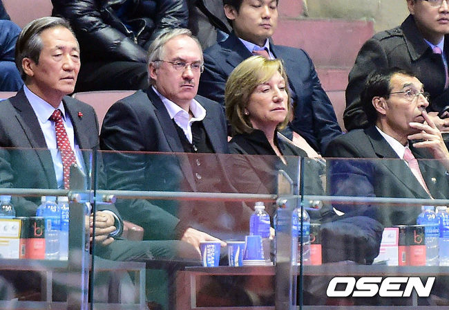 13일 오후 서울 잠실실내체육관에서 열린 '하나은행과 함께하는 Share the dream football match 2014' 자선축구경기에서 슈틸리케 감독이 경기를 관전하고 있다.