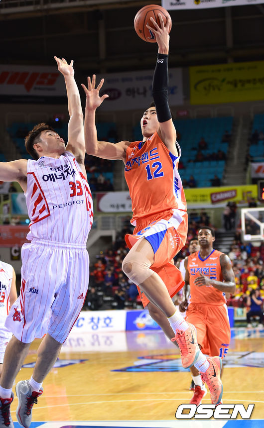 13일 오후 인천 삼산실내체육관서 열린 '2014-2015 KCC 프로농구' 인천 전자랜드와 고양 오리온스의 경기, 2쿼터 전자랜드 정효근이 레이업슛을 성공시키고 있다.