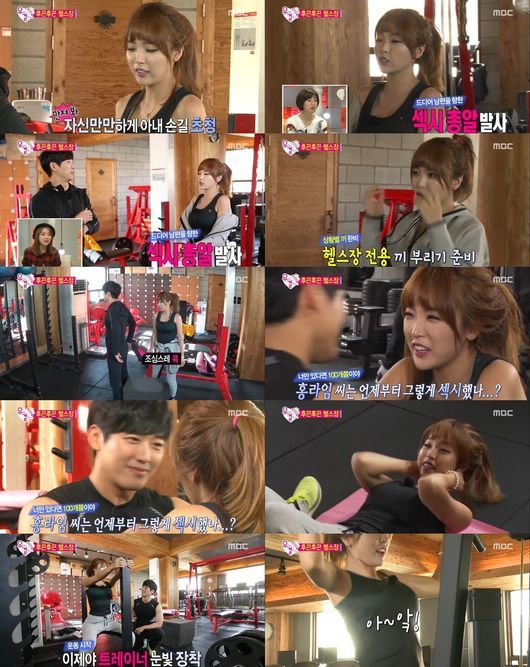 '가수 홍진영과 가상남편 남궁민이 헬스장에서 아찔한 스킨십을 선보였다.