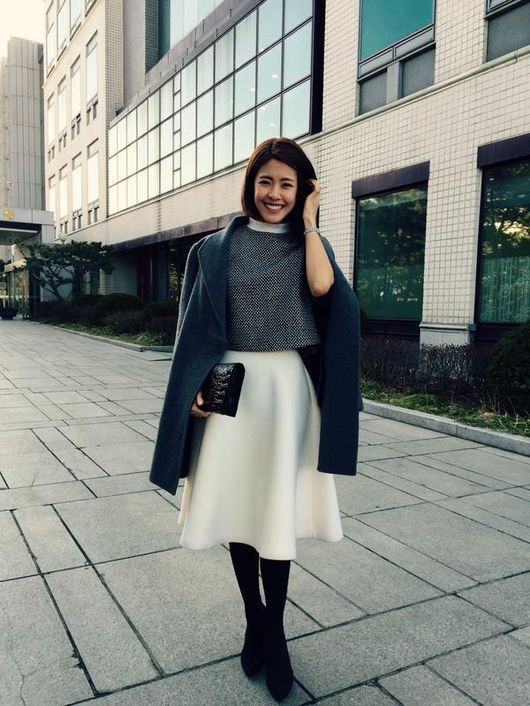 공개된 사진 속에는 체크무늬 니트에 하얀색 롱치마, 차콜색 코트를 걸치고 있는 이윤지의 모습이 담겨있다. 특히 귀를 넘기며 환한 미소를 짓고 있는 모습이 마치 화보 같은 느낌을 자아내 눈길을 끌었다.
