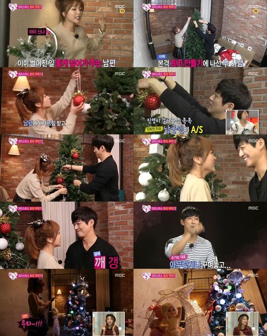 두 사람은 13일 오후 방송된 MBC 예능프로그램 '우리 결혼했어요 시즌4(이하 '우결')'에서ㅎ 크리스마스 파티 준비를 위한 트리 만들기를 진행했다.