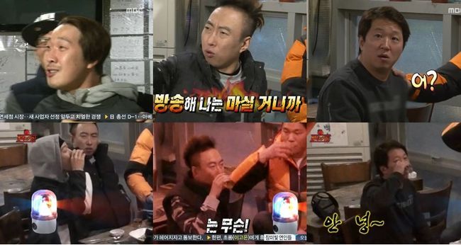 정형돈도시 서장훈과 정준하의 콤비 유혹에 넘어가, 자연스럽게 술을 마시며 '멘붕' 표정을 숨기지 못하는 모습이 담겨 웃음을 자아냈다.