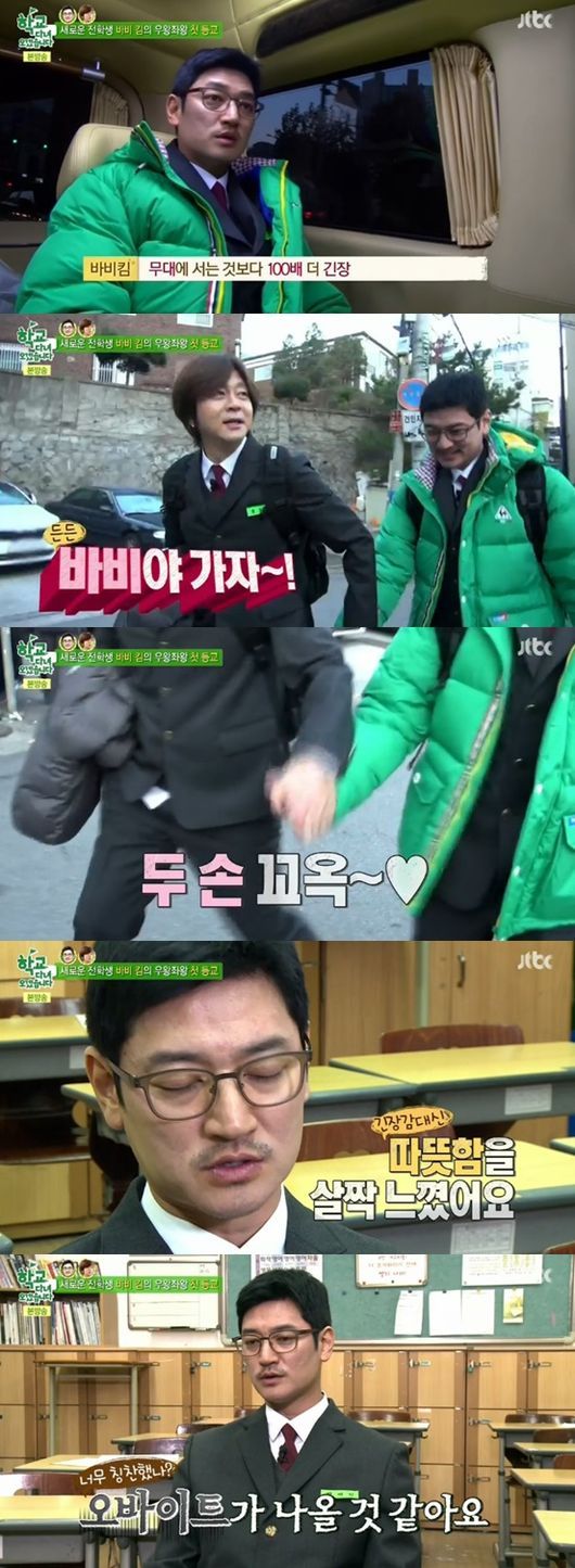 이날 바비킴은 "너무 오랜만에 학교 가서 긴장돼 2시간 밖에 못잤다"며 "무대에서는 것보다 100배 더 긴장되고 설레기도 하다. 마음 조절을 잘할 수가 없다"며 말을 더듬기까지 했다.