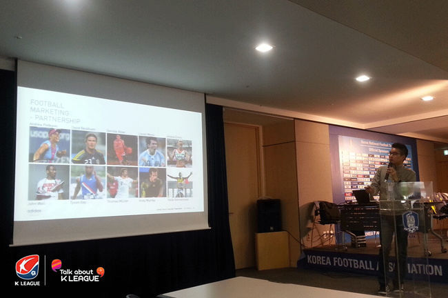 아디다스코리아의 브랜드 마케팅을 담당하고 있는 이승용 차장은 "팀 혹은 단체 후원을 통해 그들이 갖는 리더십을 브랜드가 자연스럽게 가져올 수 있으며 브랜드와 제품이 자연스럽게 노출이 가능하다는데 스폰서십의 목적이 있다“고 설명했다. 이어 K리그는 유형의 제품이 아닌 무형인 스포츠(경기, 추억, 스토리)를 판매하기 때문에 마케팅이 어려움이 따른다고 전했다. 이를 극복하기 위해 명확한 타겟 설정이 요구되며 리그 차원의 커뮤니케이션 전략, 스토리텔링과 바이럴 마케팅 등 다양한 시도가 필요하다고 강조했다.