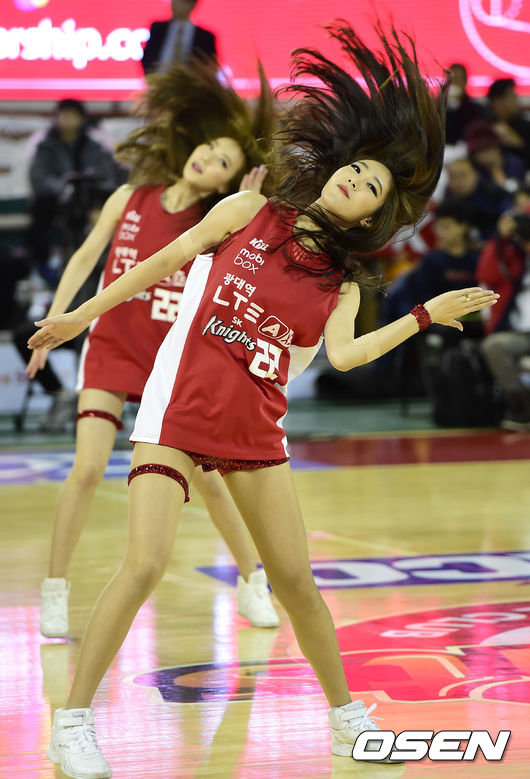 14일 오후 서울 잠실학생체육관에서 열린 '2014-2015 KCC 프로농구' 서울 SK와 창원 LG의 경기, 경기시작전 치어리더가 멋진 공연을 펼치고 있다.
