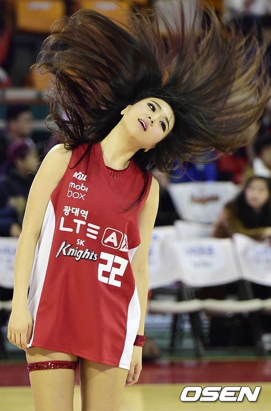 14일 오후 서울 잠실학생체육관에서 열린 '2014-2015 KCC 프로농구' 서울 SK와 창원 LG의 경기, 경기시작전 치어리더가 멋진 공연을 펼치고 있다.